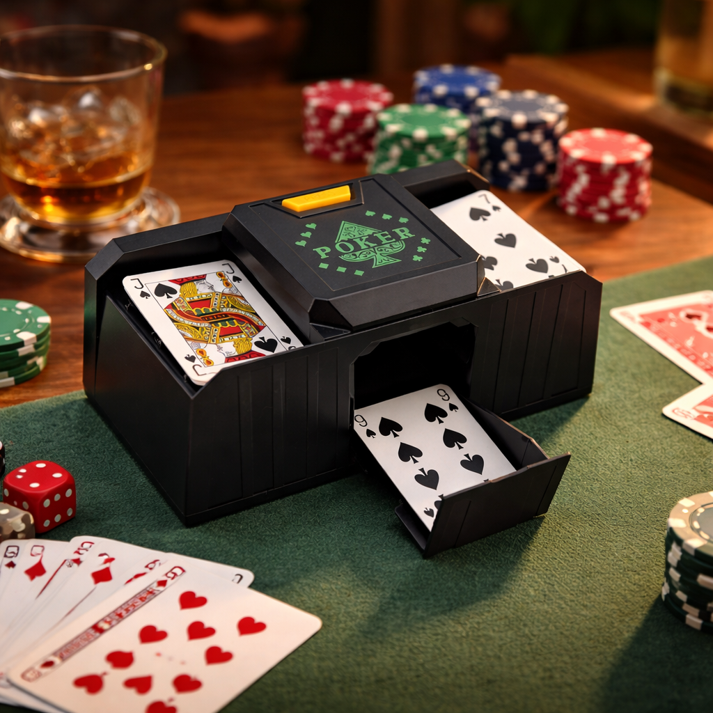 Den här lilla maskinen fixar blandningen på några sekunder och funkar med de flesta standardkortlekar. Mindre väntan, mer spel, mindre gnäll. Ett sällsynt effektivt koncept.