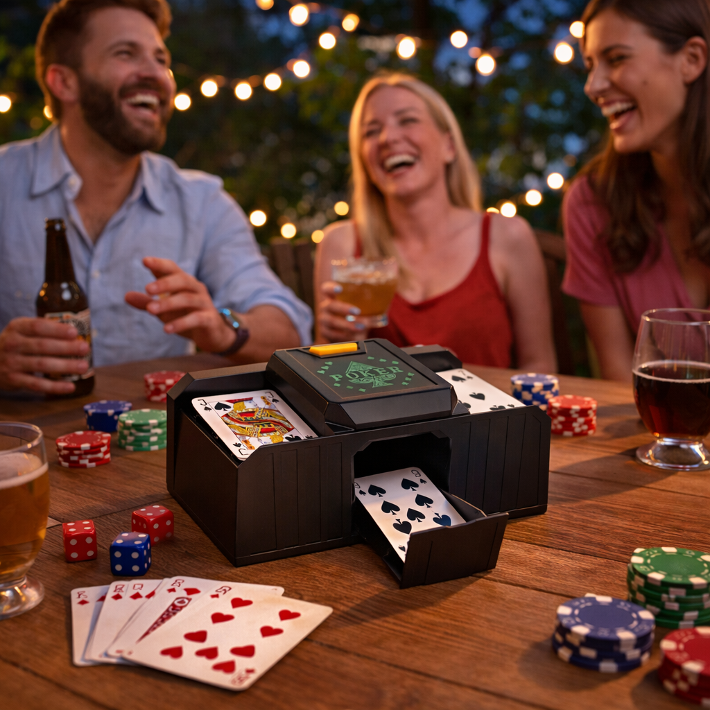 Med en automatisk kortblandare blir varje omgång rättvis, snabb och helt utan diskussioner. Stoppa i korten, tryck på knappen och låt maskinen göra jobbet. Ingen fingerfärdig kompis som “råkar” få tur varje gång.
