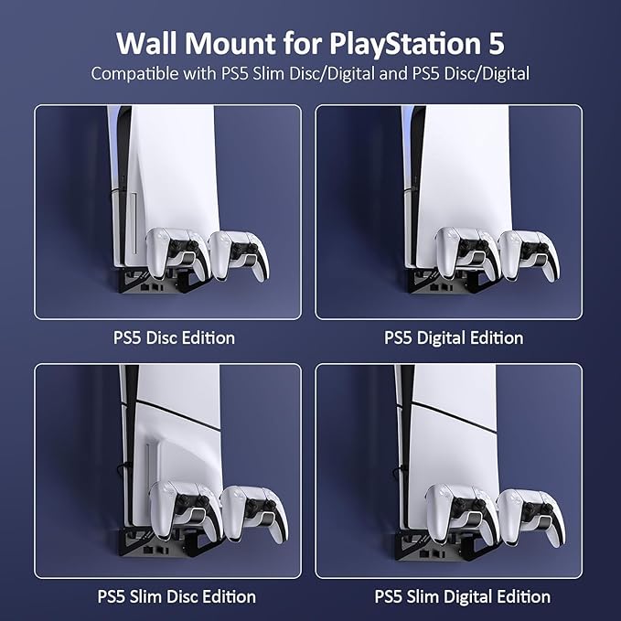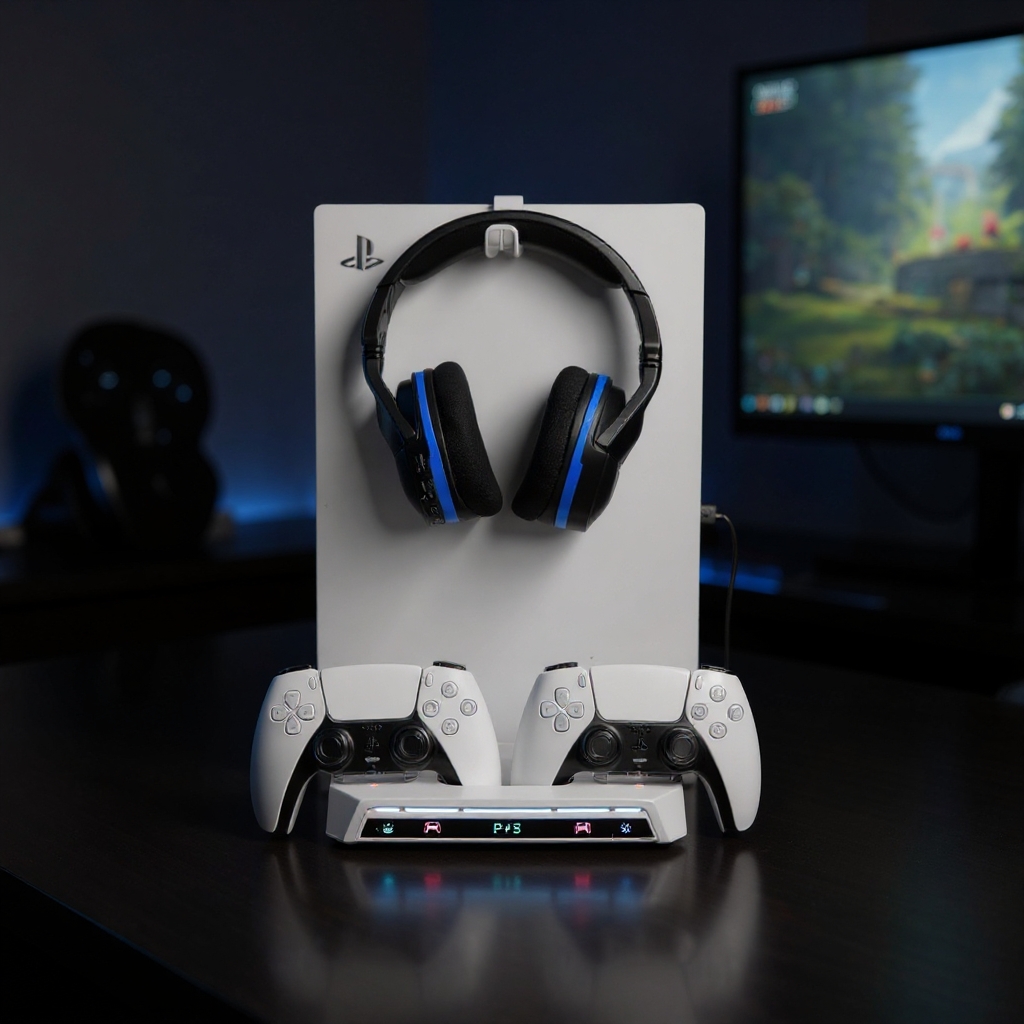 PS5 Väggfäste med Laddstation Smart väggförvaring för konsol, kontroller och headset