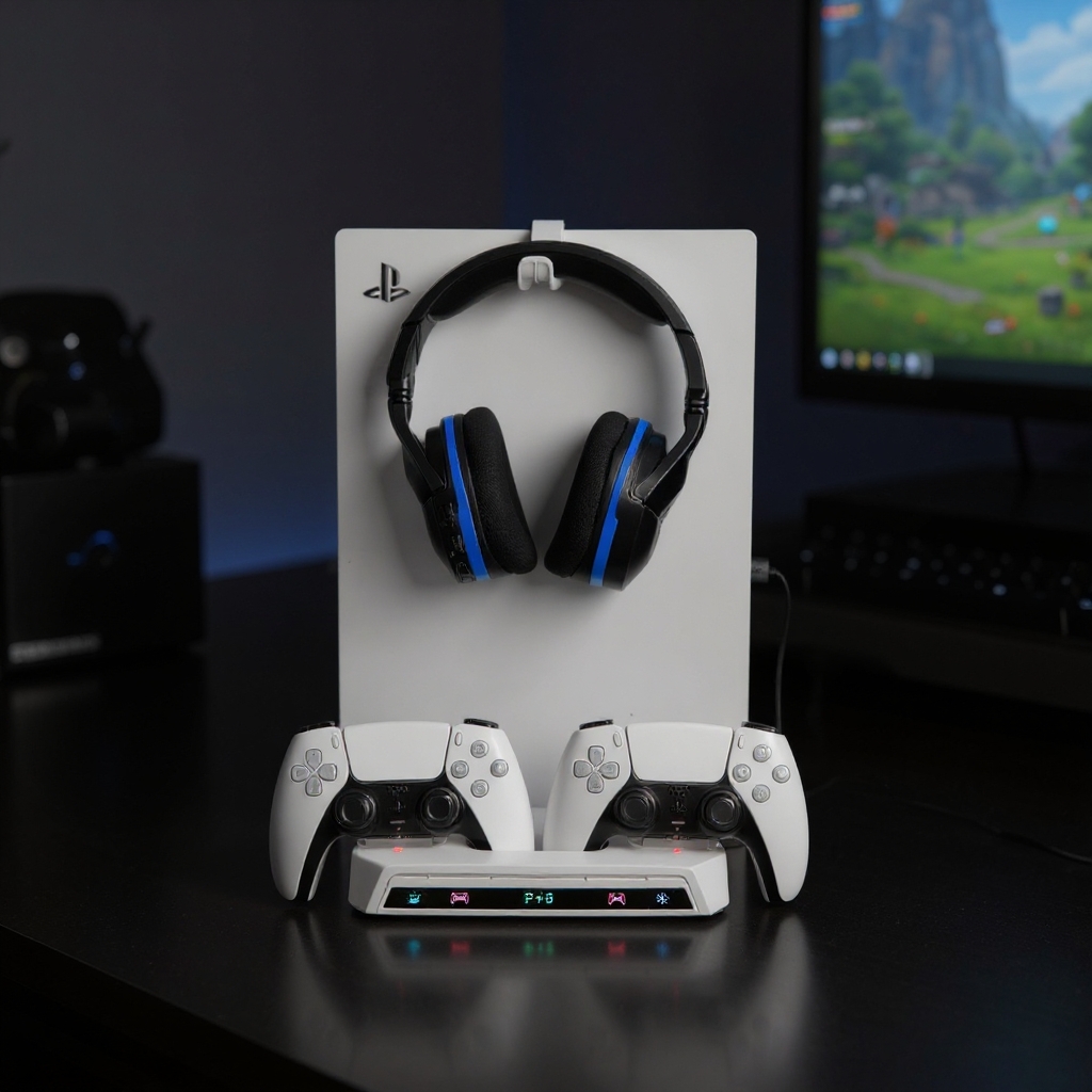 Det är inte alltid lätt att hitta en snygg plats för PS5-konsolen. Ofta hamnar den på en tv-bänk, i ett trångt fack eller mitt bland kablar, kontroller och annat som snabbt får hela rummet att kännas rörigt. Med PS5 Väggfäste med Laddstation får du en stilren och smart lösning där allt samlas på ett och samma ställe.